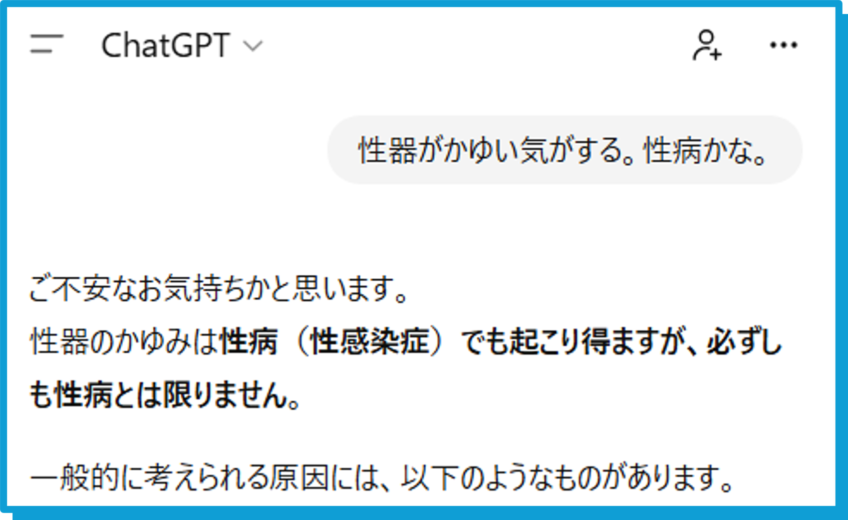 性病(性感染症)の悩みをAIに相談するのは、非常に危険です。